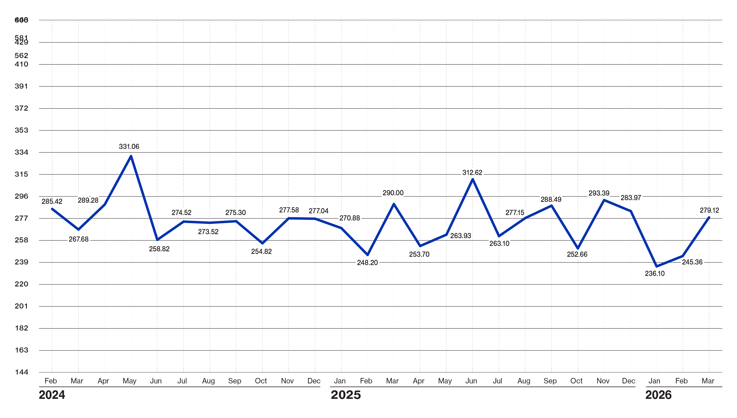 | Index (Base Jan. 88 @ 100) | $ 279.12 | $ 245.36 | $ 290.00 |
